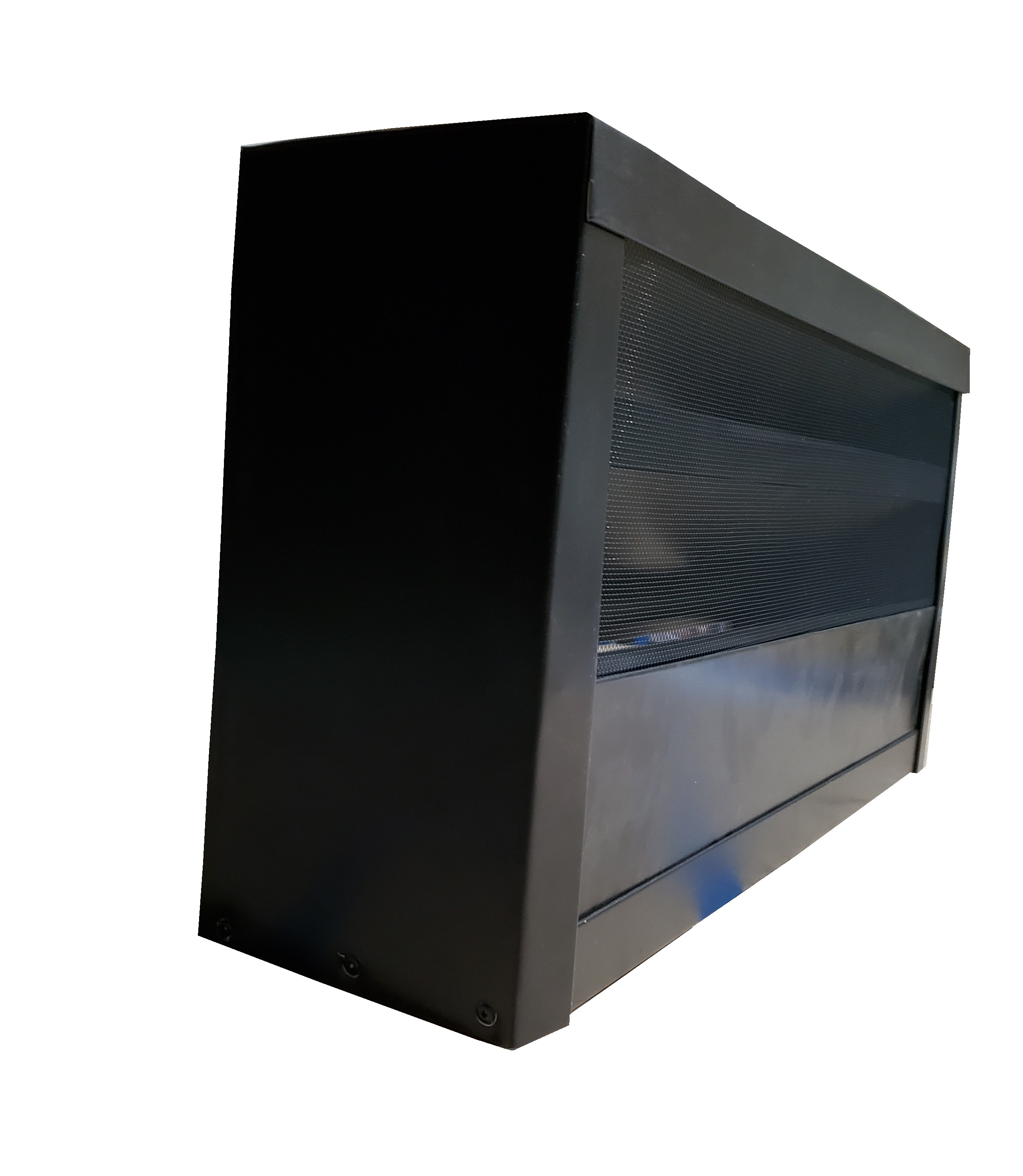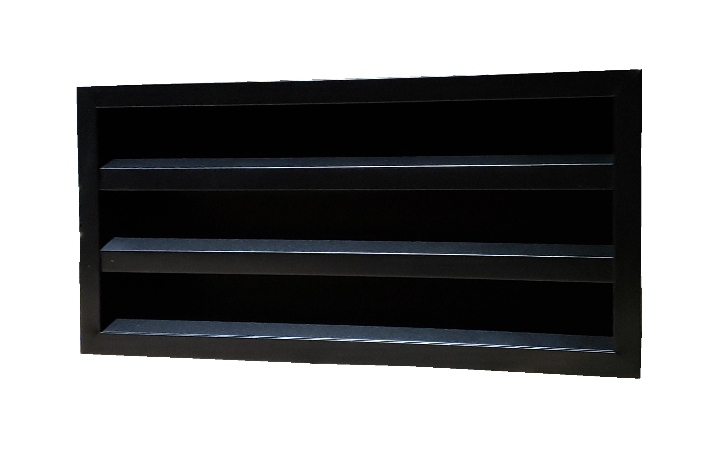 The front of the vent is trimmed with an inch trim.