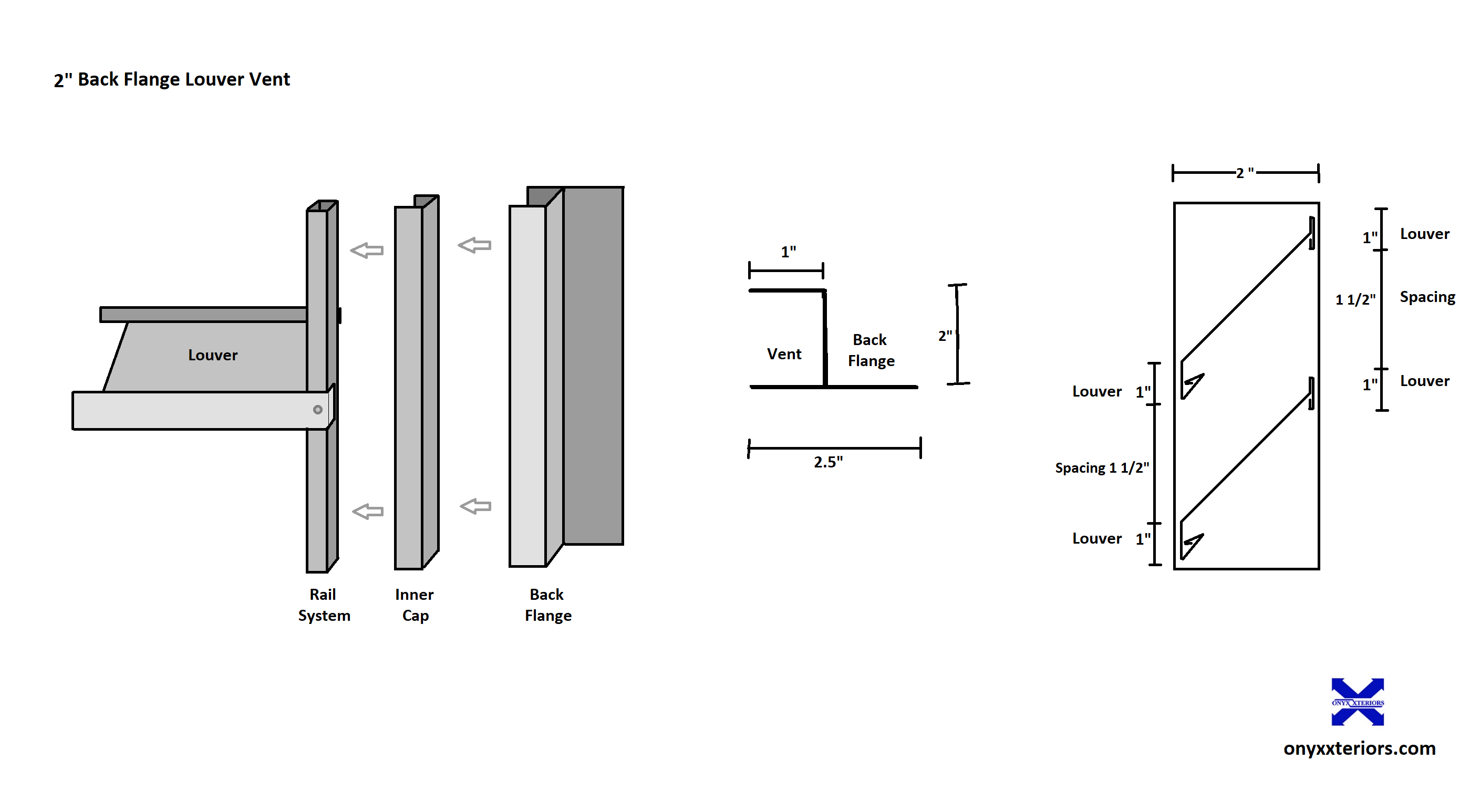 All louver vents are designed to work using the same structural rail system.